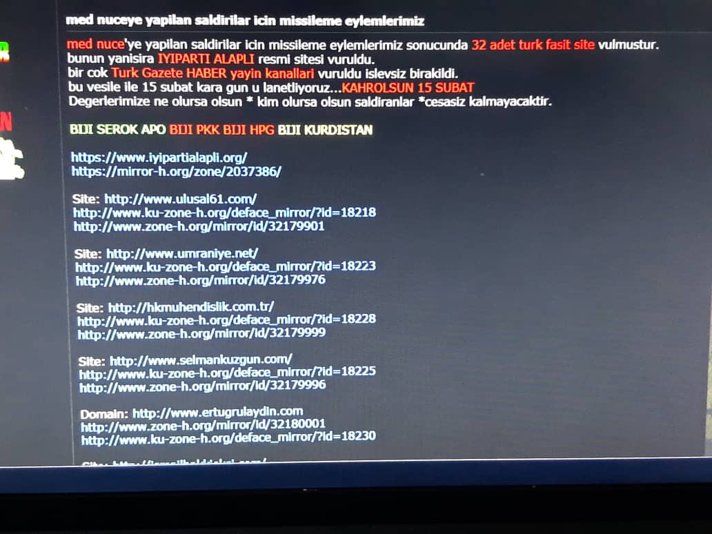 NAVENDA NÛÇEYAN- Li dijî tecrîda giran a li ser Rêberê Gelan Abdullah Ocalan û ji bo silavkirina di serîda Hevseroka KCDê Leyla Guven û çalakiyên greva bîrçîbûnê hackarên Kurd 530 malperên dewleta Tirk û alîgirên wî hack kirin û dest xistin.