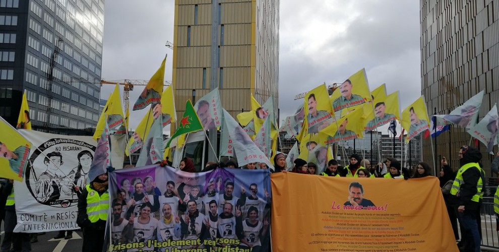 Girseya Gel li ber Dîwana Edaletê ya Ewropayê li hev civiya û bi navê Însiyatîfa “Azadî ji Ocalan re” ya Strasboûrgê û berxwedêrên greva birçîbûnê belavokek bi sernavê “Em tecrîdê bişikînin, faşîzmê hilweşînin û Rêber Apo azad bikin” hate xwendin.