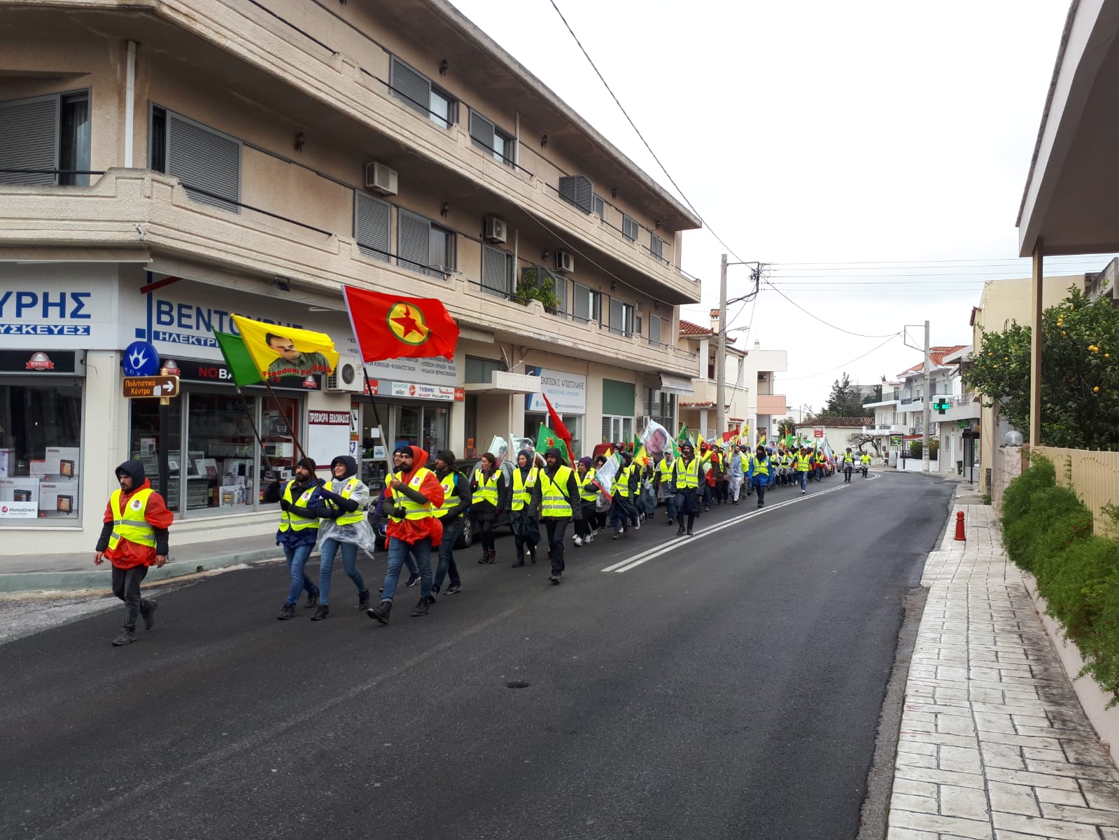 Ciwanan bi coşeke mezin û dibin marşên şoreşgerî de dirûşmeyên ‘Bijî Serok Apo’, ‘Bijî berxwedana zindanan’ û ‘Bê Serok jiyan na be’ bi zimanê Yewnanî berz kirin.