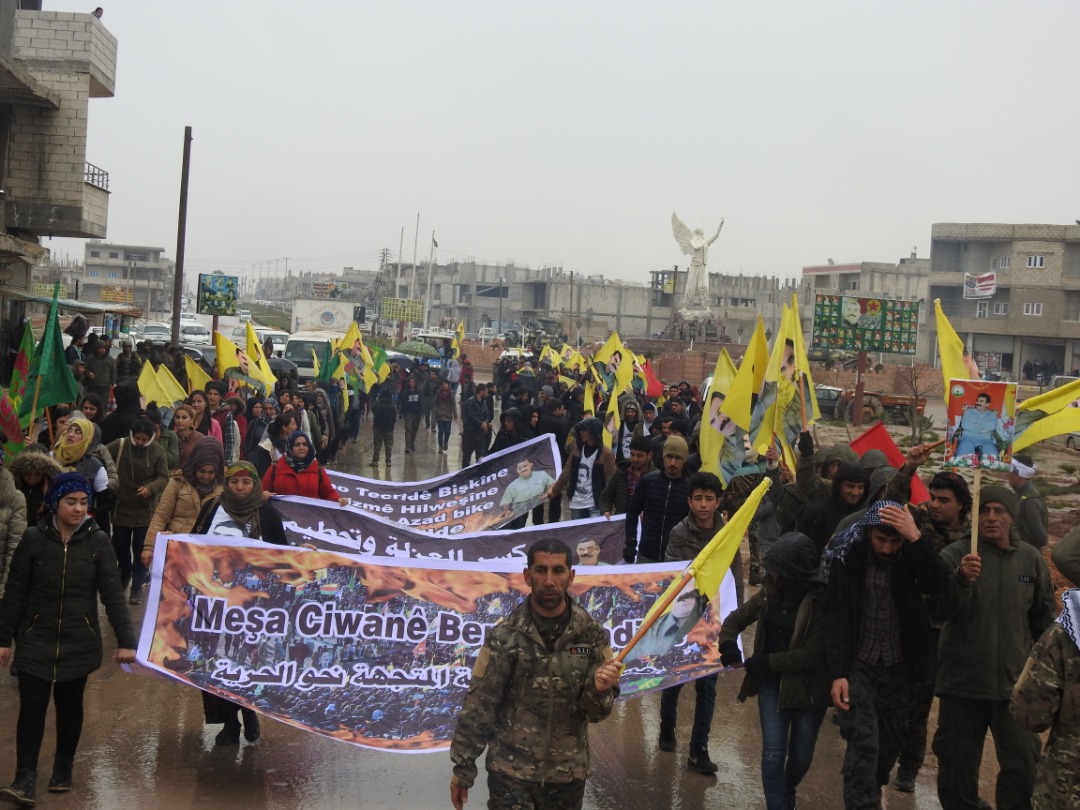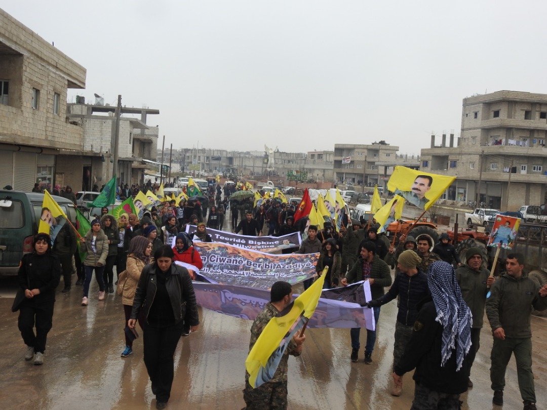 KOBANÊ- Li dijî tecrîda giran û komploya 15’ê Sibatê li ser Rêberê Gelan Abdullah Ocalan meşa dirêj a 3 rojan ê ciwanên Bakurê Suriye û Rojavayê berdewam dike.