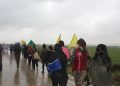 KOBANÊ- Meşa dirêj ên Tevgera Ciwanên Şoreşger ên Sûriyê ku 12’ê Sibatê di bin druşmeya “Ji bo şikandina tecrîdê û hilweşandina faşîzimê serî hilde û Rêbertî azad bike” ji navçeya Çelebiyê ya (60) km dikeve başûr rojhilatê Kobanê, destpê kir, piştî gihaşt gundê Elbelûrê bi daxuyaniyek bidawî bû. Di meşê de sedan ciwanên Sûriyê ji herêmên cuda yên Bakur û Rojhilatê Sûriyê û bajarê Minbic, Reqa û Tebqa beşdarî meşê bûn. Di roja sêyemîn a meşê de ciwanan ji Qada Jina Azadî ber bi gundê Elîpelûrê ve ketin rê.