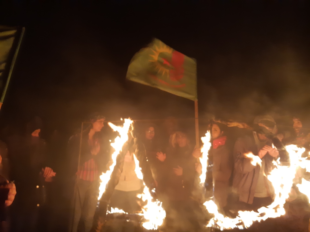 Di pêşengiya Yekitiya Jinên Ciwan (YJC) û Tevgera Ciwanên Şoreşger a Sûriye de ciwanên Girke Legê û Derîkê li dijî komploya navdewletî ya 15’ê Sibatê hatin gel hev û bi agirê, navê Rêberê Gelan Ocalan nivîsandin û çalakiyek pêkanîn.