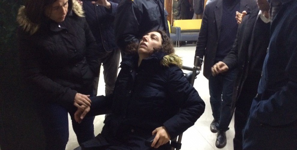 Aydenîz a ku bi wekîlan re dimeşiya, polîs bi eşkere lingê xwe da ber lingê wê û li erdê dan. Hate gotin rewşa Aydenîz gelek xirab e.