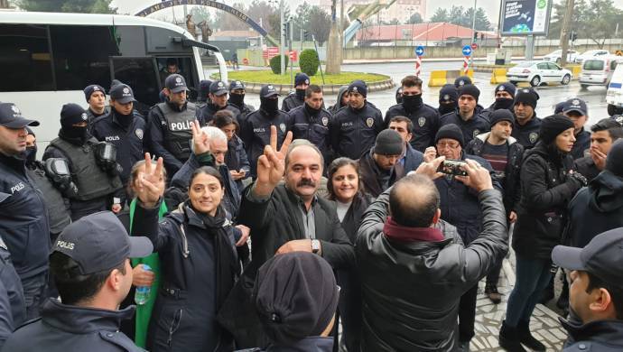 Di dema ku HDP’iyan xwe amade dikirin heya ber mala Leyla Guven bimeşin, polîsek hat gel HDP’iyan û ji wan regot “Walitiyê meş qedexe kiriye û emê ji ber vê destûr nedin meşê.” Parlemterê HDP’ê yê Mûşê Mensûr Işik jî, ji polîs re got, bi awayekê qanûnî ev meş dê neyê qedexe kirin û ger bê qedexekirin jî ewê serlêdana sûc bikin.