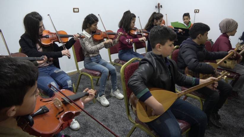 Herî dawî jî xwendekarên peymangehê stran gotin û li amûrên muzîkê xistin