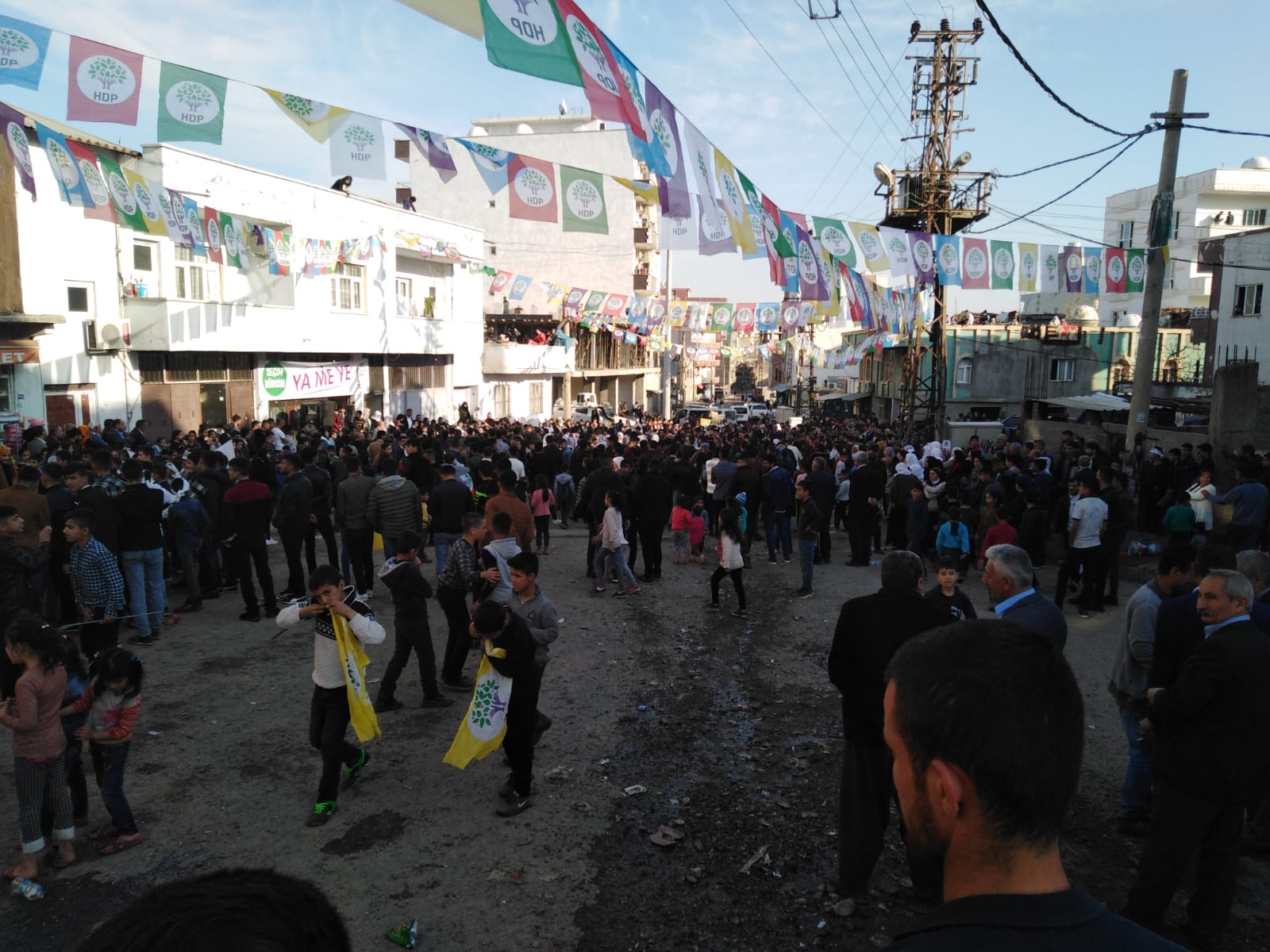 NAVENDA NÛÇEYAN – Partiya Demokratîk a Gelan (HDP) li Taxa Cûdî ya navçeya Cizîr a Şirnexê bi beşdarbûna hezaran kesî buroya hilbijartinê vekir. Malbatên ku di pêvajoya berxwedana xwerêveberiyê de xizmên wan şehîd bûbûn beşdarî vekirina buroyê bûn.
