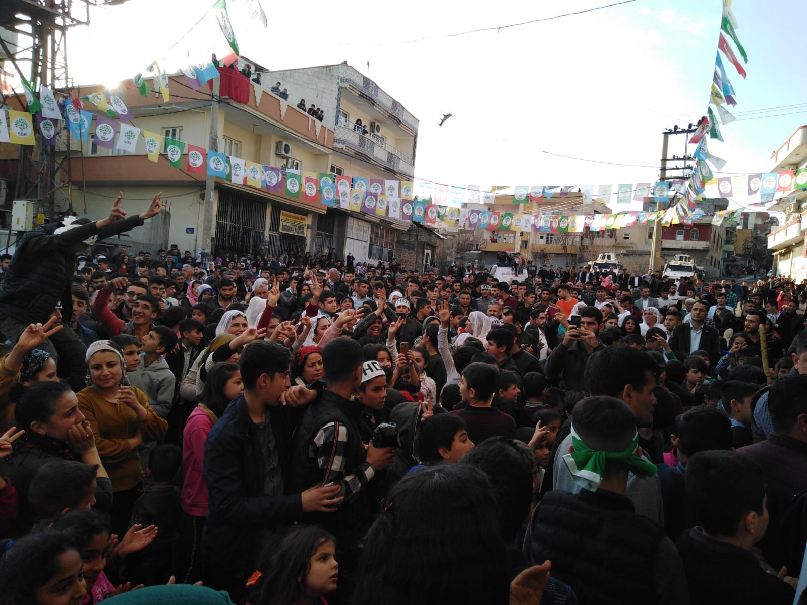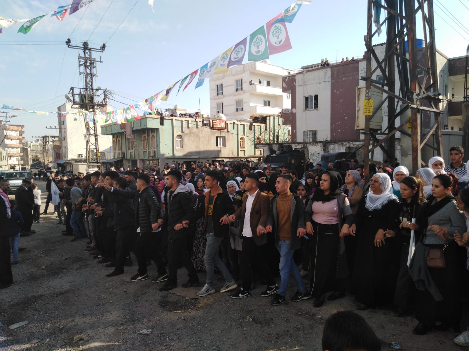 Ozguneş di dawiya axaftina xwe de Hevserokên Meclîsa Gel ên Cizîrê Mehmet Tûnç û Asya Yuksel bi bîr anî. Girseya gel dirûşmeya ‘Şehîd Namirin’ û ‘Bijî Berxwedana Cizîrê’ berz kirin.