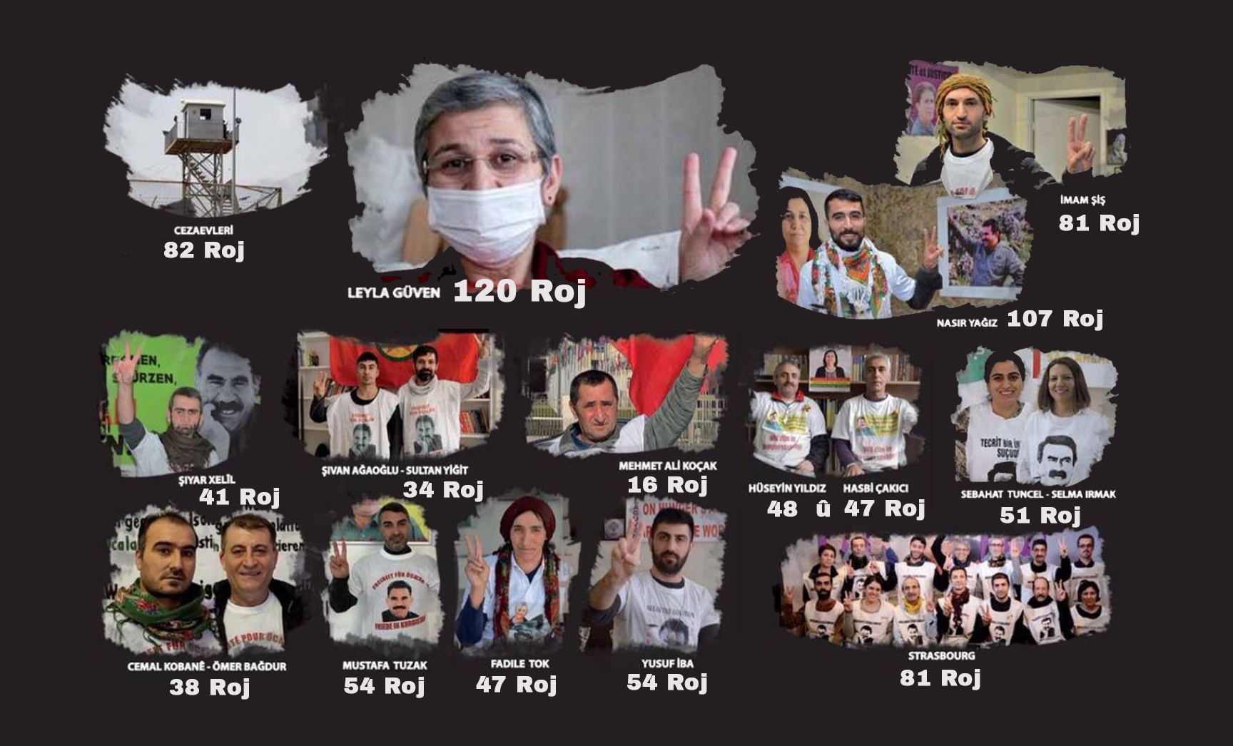 Çalakiya greva birçîbûnê ya Hevseroka Kongreya Civaka Demokratîk (KCD) û parlamentera Partiya Demokratîk a Gelan (HDP) ya Colemêrgê Leyla Guven ku li dijî tecrîda li ser Rêberê Gelan Abdullah Ocalan dabû destpêkirin di roja 120’an de berdewam dike
