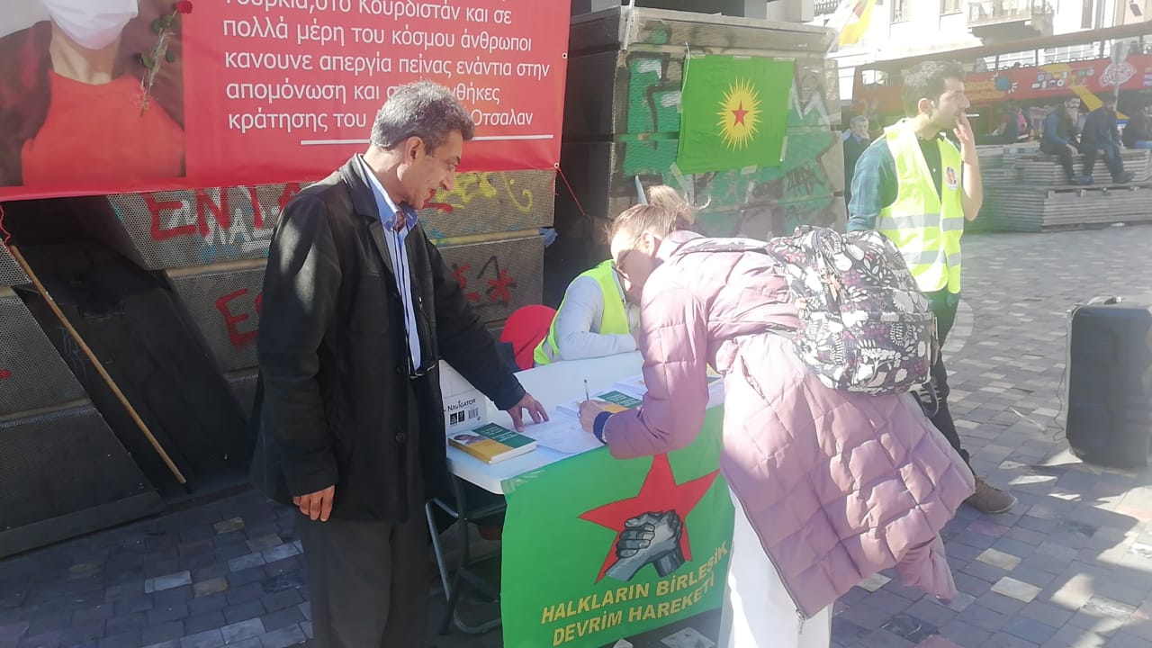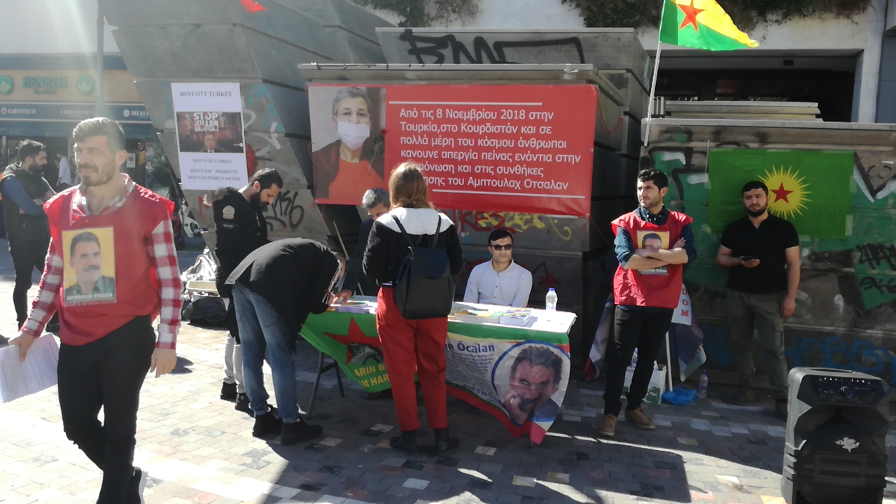ATÎNA – Li Qada Monastirakî ya Atînayê stand hate danîn, belavok hatin belavkirin û derdor ji tecrîd û grevên biçîbûnê hatin agahdarkirin. Li paytexta Yewnanista Atînayê ji bo protestokirina tecrîda giran a li ser Rêberê Gelan Abdullah Ocalan û xwedîderketina li berxwedêrên grevên biçîbûnê çalakiyek hate kirin. Çalakî di pêşengtiya Platforma Yekitiya Çalakiyan ya Yewnanista a Kurdistan û Tirkiye de pêk hat.