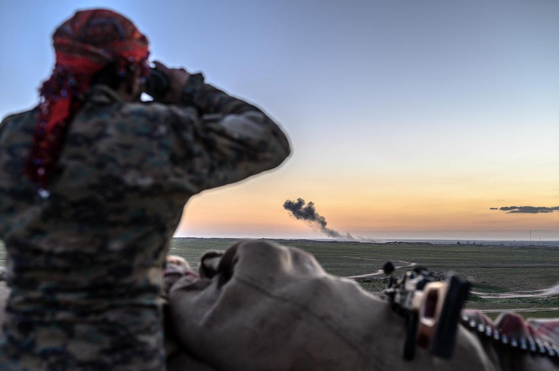Servanên QSD’ê depoyên cebilxaneyê yên çeteyên DAIŞ’ê li gundê Baxozê teqandin û ji duh ve agir û dûman ji nava gund radibe.