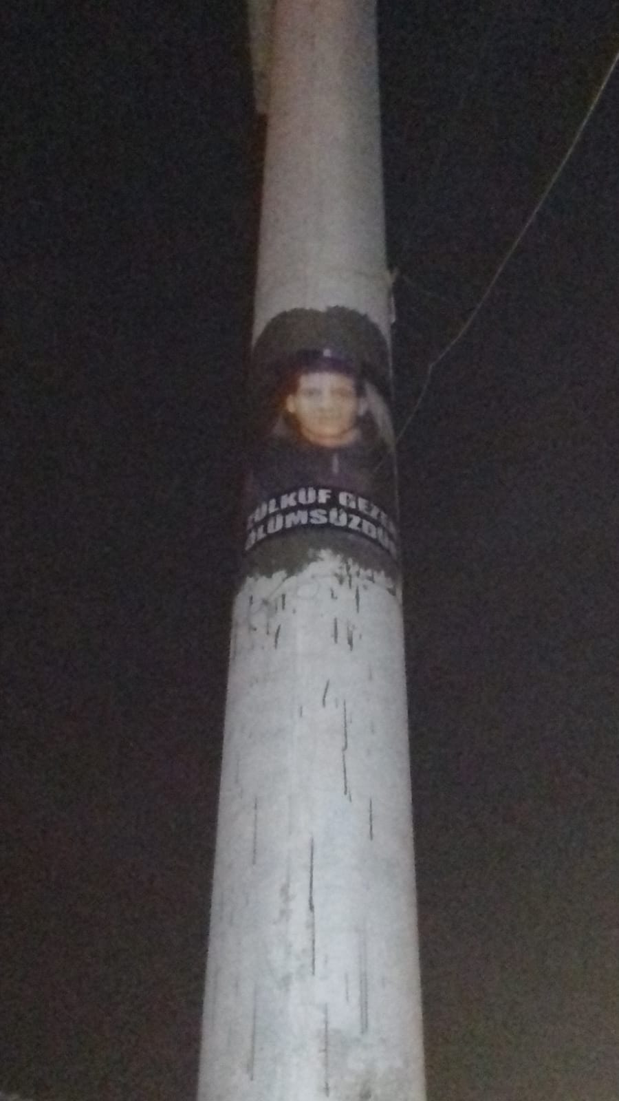 Her wiha endamên Meclisa Ciwanên HDP’ê ya Edenê li navçeya Seyhan li kolana Denizli weneyên Gezen bi nivîsa “Zulkuf gezen nemire” li gelek deveran zeliqand.