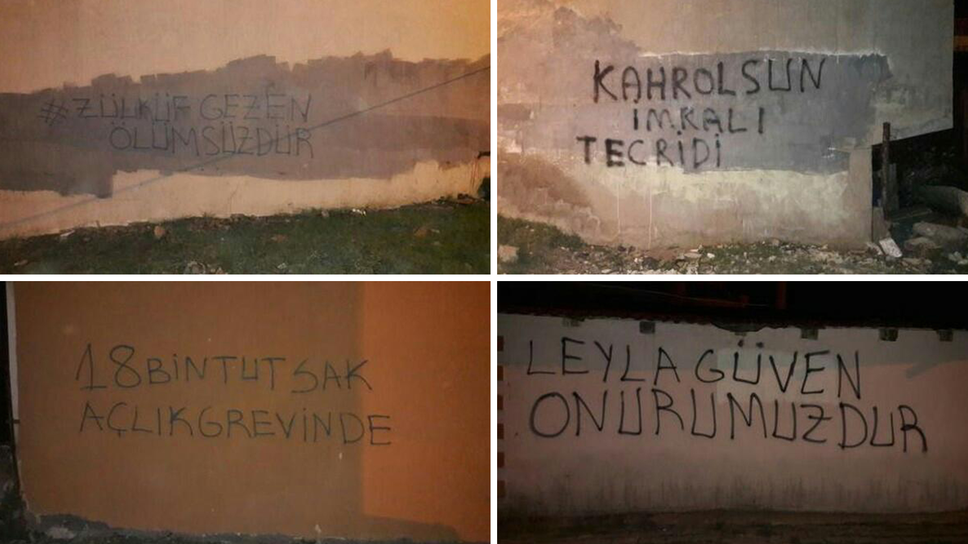 Ciwanan di çalakiya xwe de “Bimre tecrîda Îmraliyê”, “Leyla Guven rumeta me ye”, “Zulkuf Gezen nemire”, ”18 hezar girtiyên zindanan di greva birçîbûnê de ne” li ser dîwaran nivîsandin.