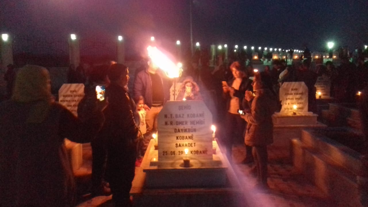 KOBANÊ – Li Kobanê pîrozbahiyên Newrozê bi çuyîna gorîstana şehîdan destpê kir. Ciwan û welatiyên Kobanê bi wesîleya Newrozê çûn serdana gorîstana şehîdan û ji bo her şehîdekî mûmek pêxist. Ciwanên Kobanê li ser Girê Miştenûr agir Newroz pêxist û ev agir heta ji Suruçê ve jî hate ditîn.