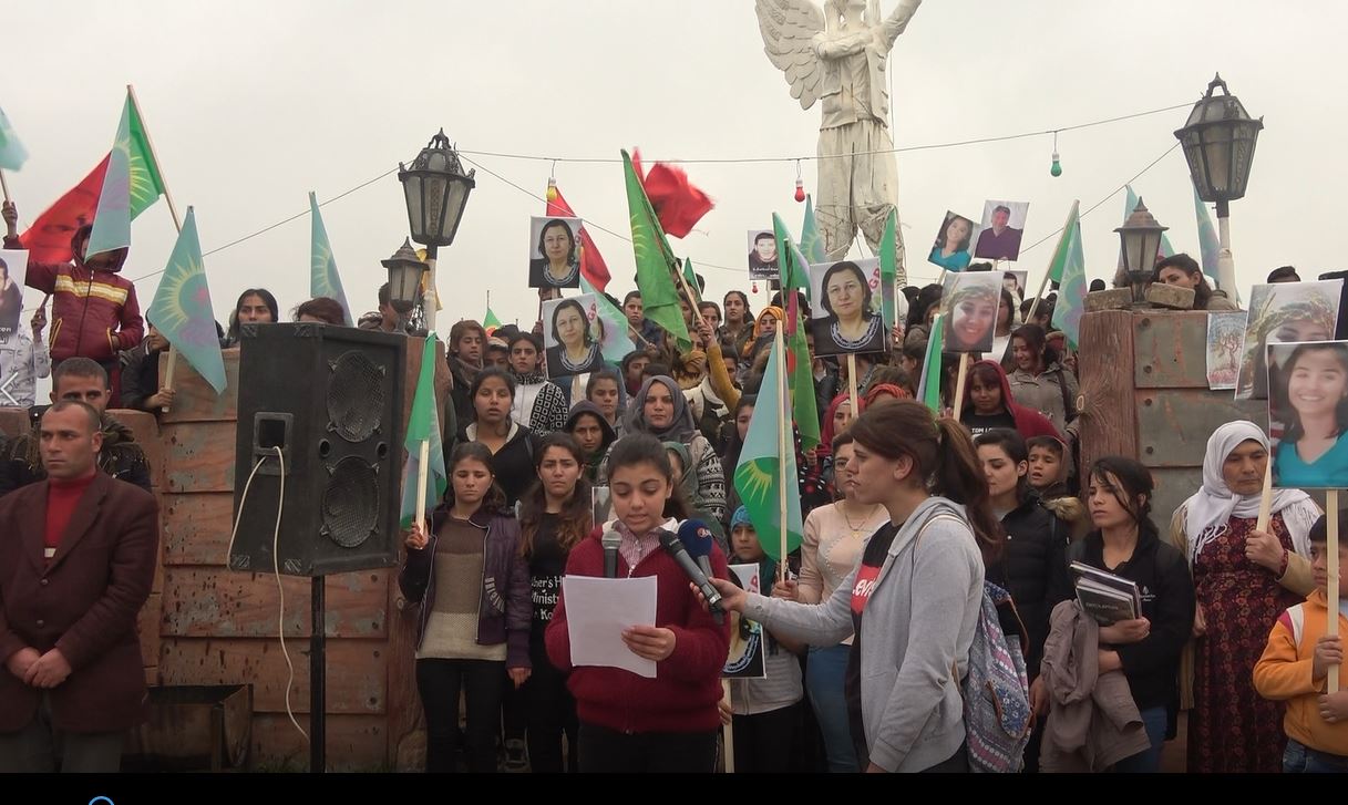 Bi vê wesileyê endamên Yekitiya Jinên Ciwan ên Kobanê û Jinên Kobanê di çarçoweya çalakiyên 8’ê Adarê Roja Jinên Cihanê de li ber peykera Şehîd Arîn Mîrkan de hatin gel hev û çalakiyek li darxistin. Jinên Ciwan di çalakiya xwe de 8’ê Adarê diyarî berxwedêr Hevseroka KCD’ê Leyla Guven kirin û ji bo wî meşale pêxistin.