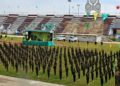 Şahiyê bi deqeyeke rêzgirtinê û toraneke leşkerî ji hêla şervanên YPJ’ê ve dest pê kir. Piştre, daxuyaniya Fermandariya Giştî ya YPJ’ê hate xwendin.