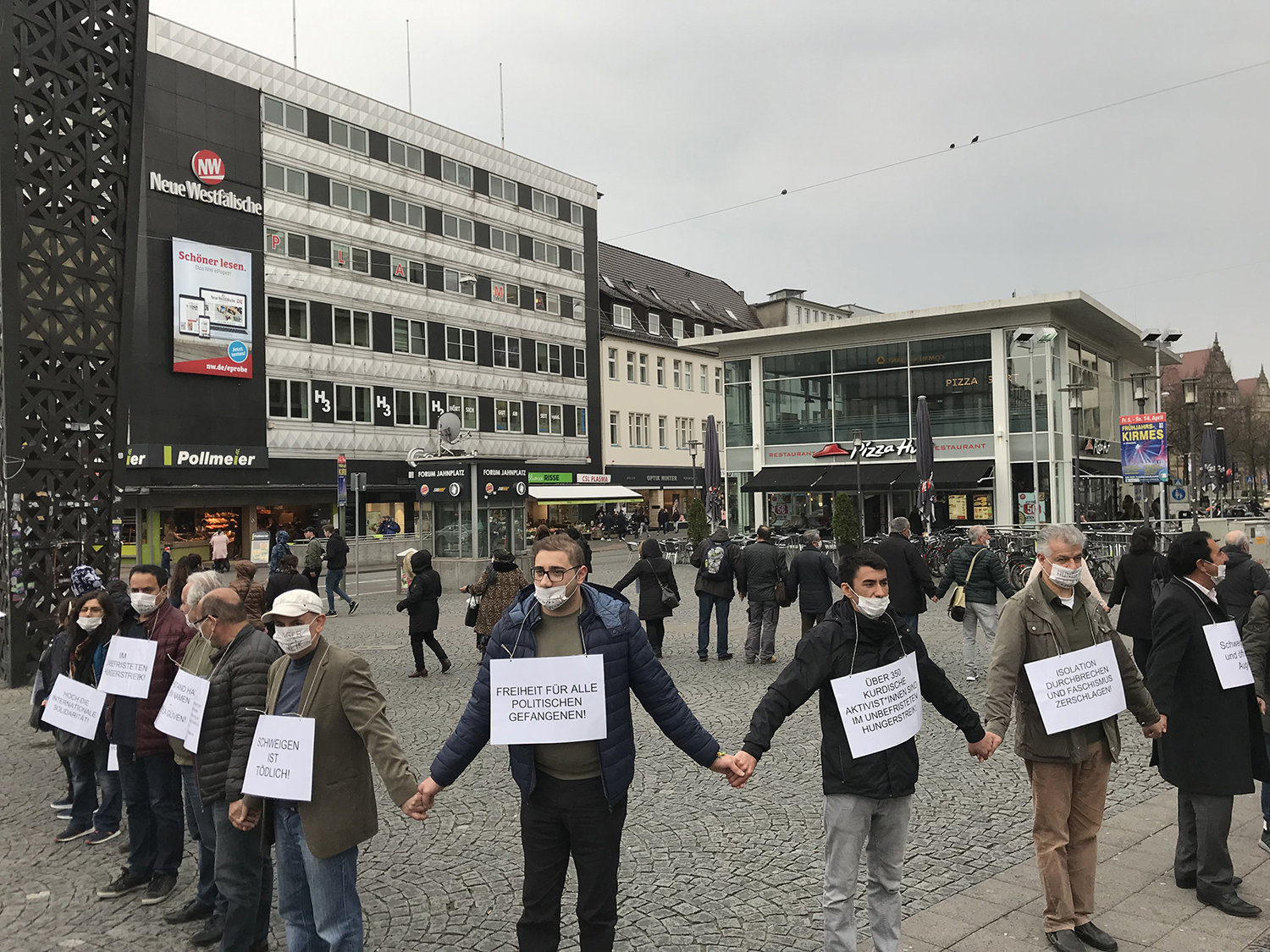 Ciwan û Kurdistanî bi çalakiya xwe bal kişand ser berxwedanên grevên birçîbûnê ku li tevahî cihanê belav buye û nêzî 7.000 girtiyên siyasî jî beşdarî vê çalakiyê bûn. Çalakvanên Bielefeldê ‘zincîra mirovan’ çêkir, bi maskeyan û afîşên ku li ser wan nivîsên “Bêdengî mirine û Azadî ji bo Ocalan” li navenda bajarê meşiyan.