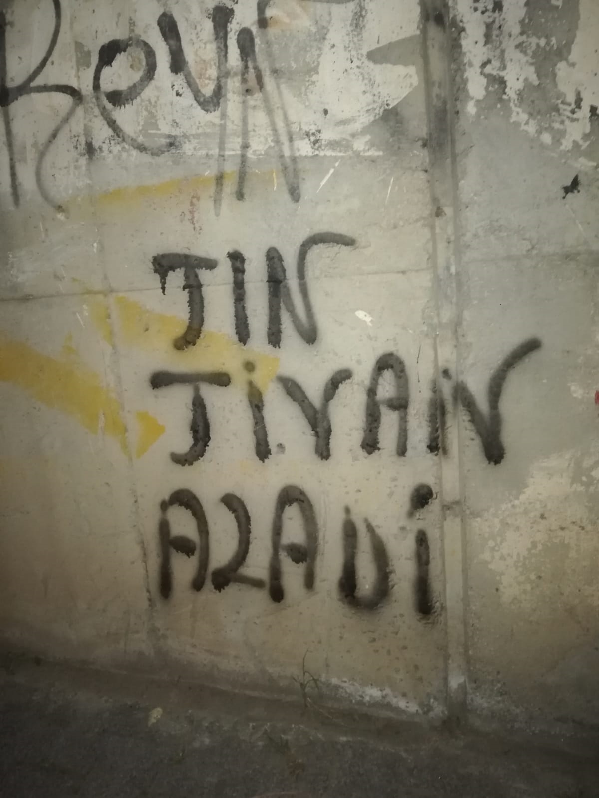 Li navçeya Stenbolê Maltepe jinên ciwan li ser diwaran “Bê Serok jiyan nabe”,”Tecrîdê bişkine”,”Jin Jiyan Azadi”,”Leyla Guven rumeta me ye”,”PKK” û “Ji Ocalan re azadî” nivîsandin.