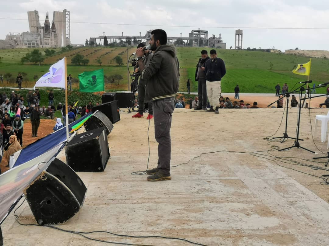 Paşê endama Tevgera Ciwanên Demokratîk Reşîd Silêman axivî û got: “Li gelemperiya Bakur û Rojavayê Sûriyê û tevahî Kurdistanê ciwan li hemberî faşîzmaya Tirkiyê li ser piyan in. Em ê piştgiriya xwe bi berxwedana çalakgerên grevên birçîbûnê re bi domînin heta Ocalan azad bibe û herêmên dagirkirî rizgar bibin.”