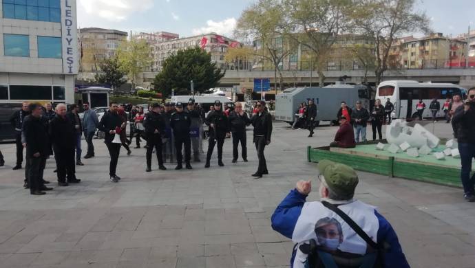 STENBOL – Rêxistina Partiya Demokratîk a Gelan (HDP) a Navçeya Kartalê, ji bo balê bikişîne ser grevên birçîbûnê yên li girtîgehan, li Qada Kartal çalakiya rûniştinê ya bêdeng li dar xist, lê polîsan mudaxileyî çalakgeran kirin. Gelek endamên partiyê Parlementerê HDP’ê yê Stenbolê Mûsa  Pîroglû jî di nava de, pêşmalkên wêneyên Hevseroka KCD’ê Leyla Guven li ser li xwe kirin û li qadê li hev kom bûn. Endamên partiyê li qadê dest bi çalakiya rûniştinê ya  bêdeng kirin. Polîsan li ser vê yekê ji HDP’iyan re gotin “Tişta hûn dikin dij qanûnî ye. Demildest çalakiya xwe bi dawî bikin.” Parlementer Pîroglû li ser vê anonsa polîsan got ku “Esil tişta hûn dikin dij qanûnî ye. Hûn sûc dikin. Hûn sûcekî qanûnî dikin.”