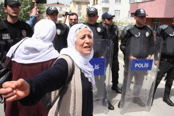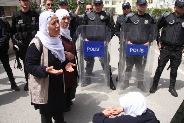 Polîsan bi darê zorê xwestin dayîkan li taksiyan siwar bikin û nehiştin ku rojnameger van dîmenan qeyd bikin.Polîsan dîmenên di telefona rojnameger Serpîl Unal de jêbirin.