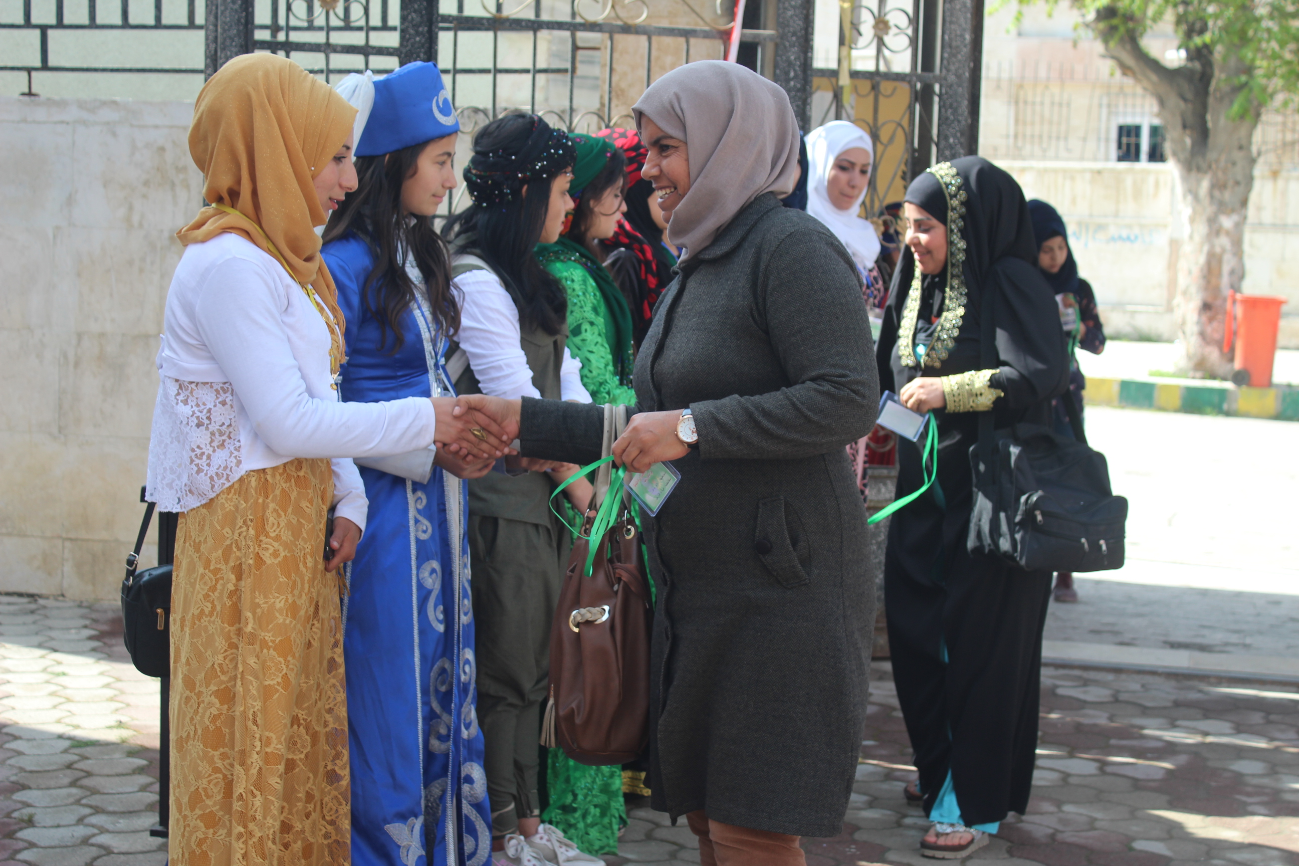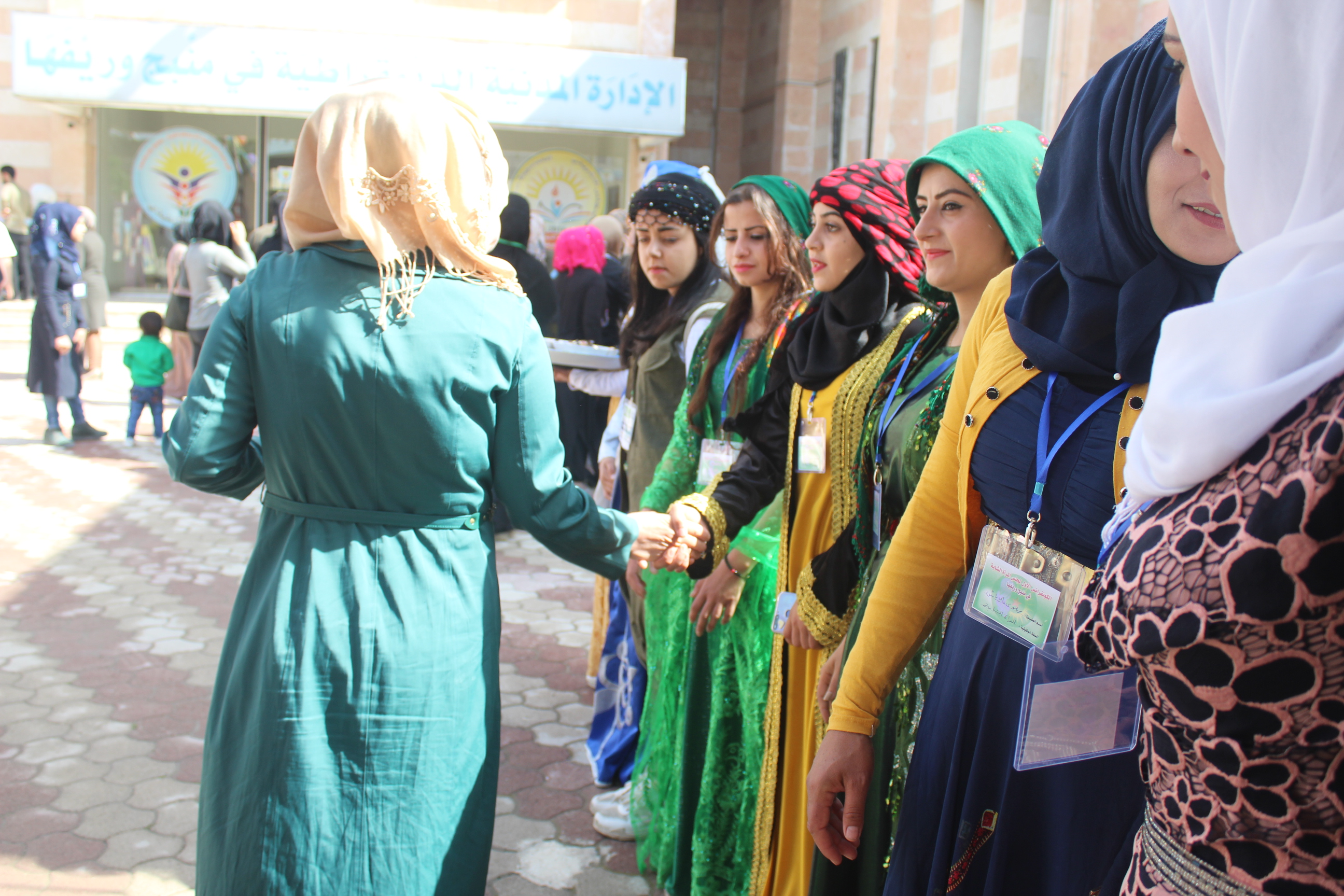 Berdevka Fermî ya Jinên Ciwan a Bakur û Rojhilatê Sûriyê Leyla El-Ebd, Hevseroka Meclisa Rêveber a Minbic û gundewarên wê Nezîfa Xelo, bi navê Meclisa Jinan a Minbic û gundewarên wê Tehanî Lezîz û Hevseroka Desteya Ciwan û Werzîşê ya Rêveberiya Xweser a Bakur û Rojhilatê Sûriyê Meha El-Feysel axivîn.