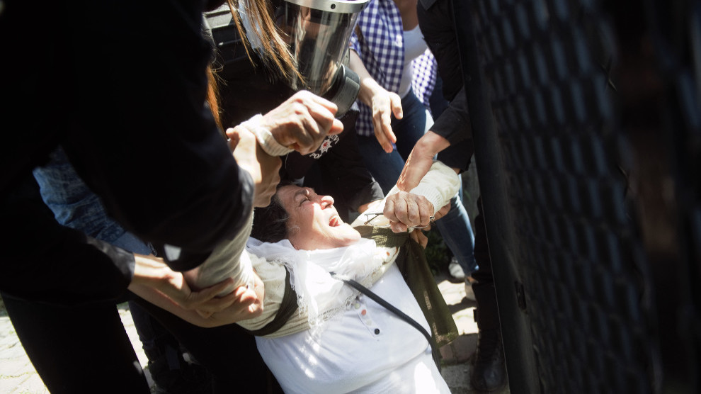 Parlementerên HDP’ê Dîlşat Canbaz Kaya, Tûna Çelîk û Alî Kenanoglû jî di nav de yên li çalakiya nobedê, 4 dayikan bi erdê re kaşkirin û destgîrkirin.