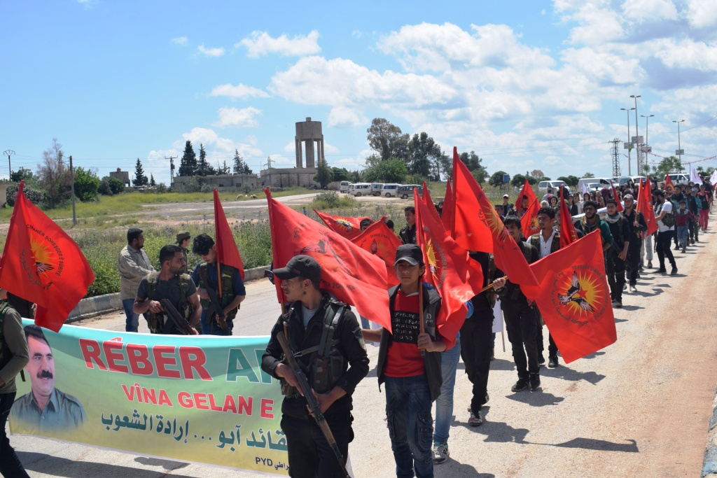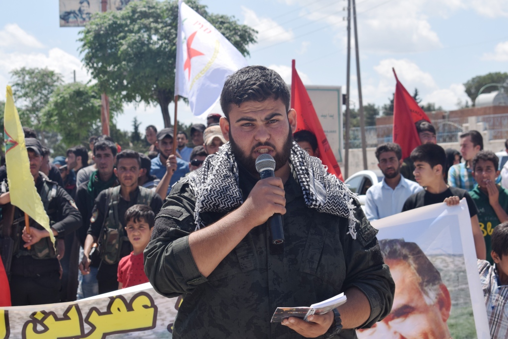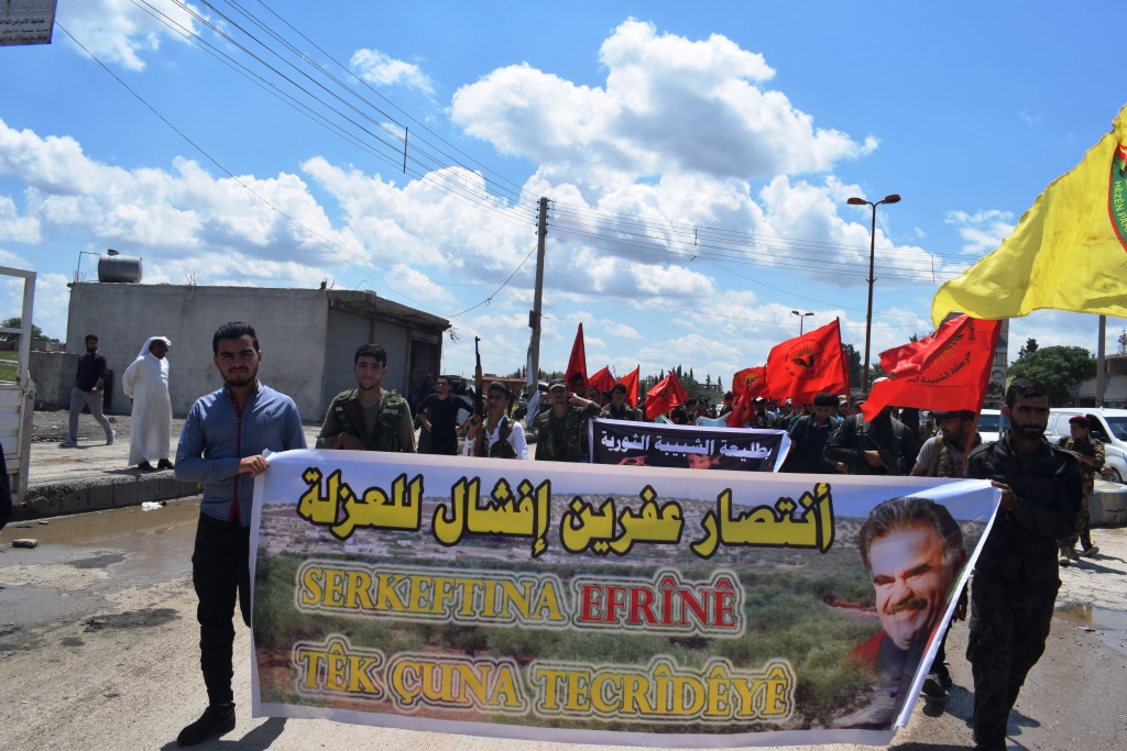 Xwepêşandan bi vexwendina Tevgera Ciwanên Şoreşger ên Sûriyê, bi beşdariya bi dehan ciwanan û hejmarek ji şêniyan hate lidarxistin. Xwepêşandan bi armanca şermezarkirina Tirkiyê bo lêkirina dîwarê parçekirinê ku Efrînê ji Sûriyê qut dike û tecrîda ku hikumeta Tirkiyê li ser Ocalan dimeşîne, li dar ket.