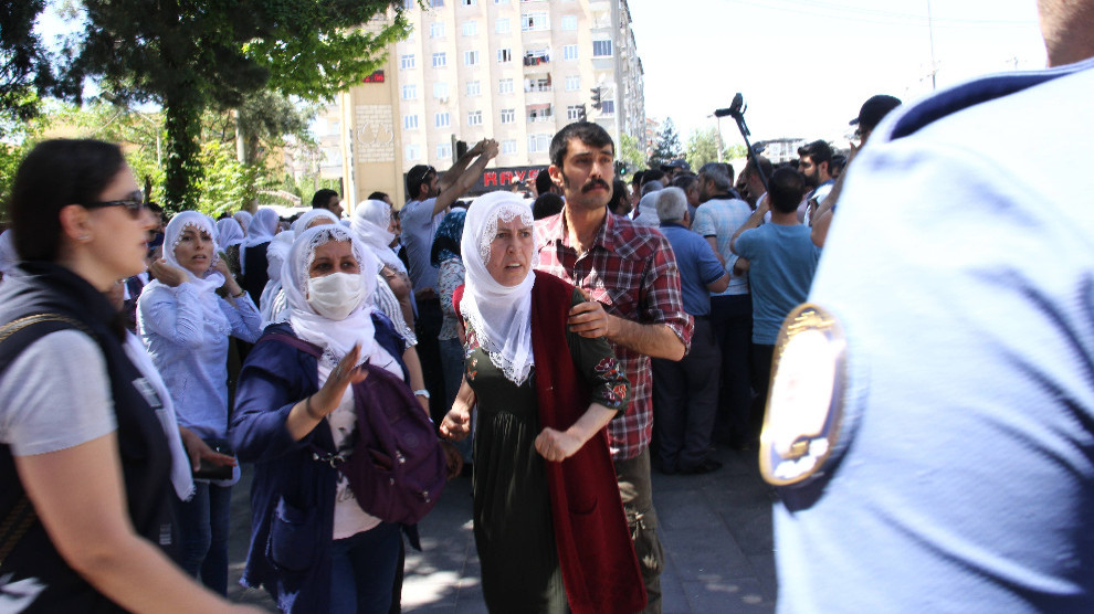 AMED – Dayikên ku zarokên wan li dijî tecrîdkirina Rêberê Gelan Abdullah Ocalan, di greva birçîbûnê û rojiya mirinê de ne, ji 1’ê Gulanê ve li Parka Koşuyolu ya Rezan her roj kom dibin û çalakiya rûniştinê lidar dixin. Dayik her roj dibin dorpêça polîsan de kom dibin û piştî dorpêça polîsan dişkînin dimeşin, daxwazên xwe tînin ziman. Dayik îro jî piştî nîvro li qada Batikentê kom bûn û xwestin bimeşin. Polîsan dîsa dayik dorpêç kirin û destûr nedan dayik bimeşin. Dayikan piştî çalakiya rûniştinê ya 2 saetan barîkat û dorpêça polîsan şikandin û meşiyan. Dayikan li vir tevî mudaxale û dorpêça polîsan stran gotin û bê navber dirûşme berz kirin. Dema dayik kom bûn û stran gotin polisan mudaxale kir û Hezal Yildirim destgîr kirin. Piştî demeke Yildirim hat berdan û dîsa tev li çalakiyê bû.