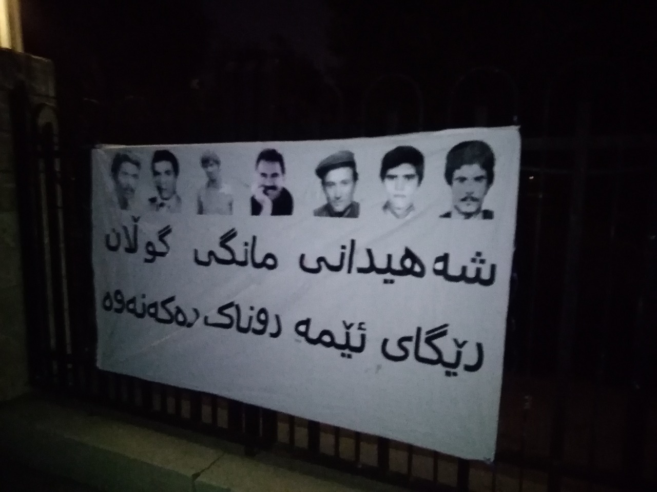 SILÊMANÎ – Li Başûrê Kurdistan li bajarê Silêmanî Ciwanên Şoreşger bi çalakiyekê ‘Şehîdên Meha Gulanê’ bibîranîn. Li navenda Silêmanî ciwanan pankartek bi weneyên şehîdên pêşeng yên PKK ku di meha Gulanê de şehîd ketine hate daliqandin. Li ser pankartê nivîsa “Şehîdên Meha Gulanê Riya me Ronî dike” hatibû nivîsandin. Çalakî bala welatiyan kişand.