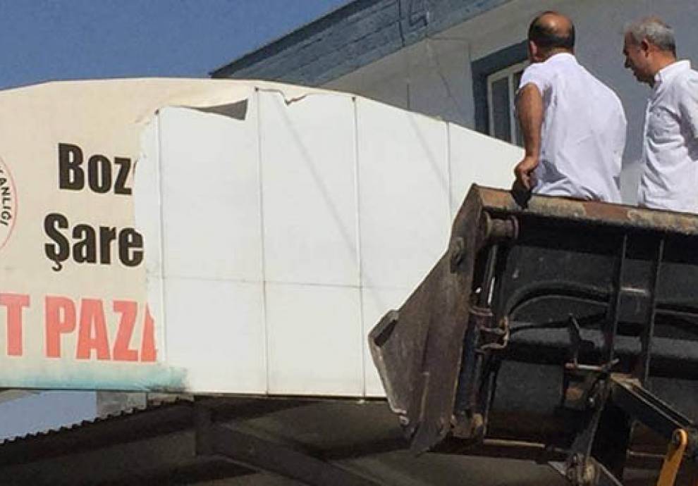 RIHA – Sûphî Aksoy ê Akp’î yê qaşo ji bo Serokê Şaredariya Hewag hat hilbijartin, nivîsa Kurdî ya li ser lewheya bazara semtê rakir.