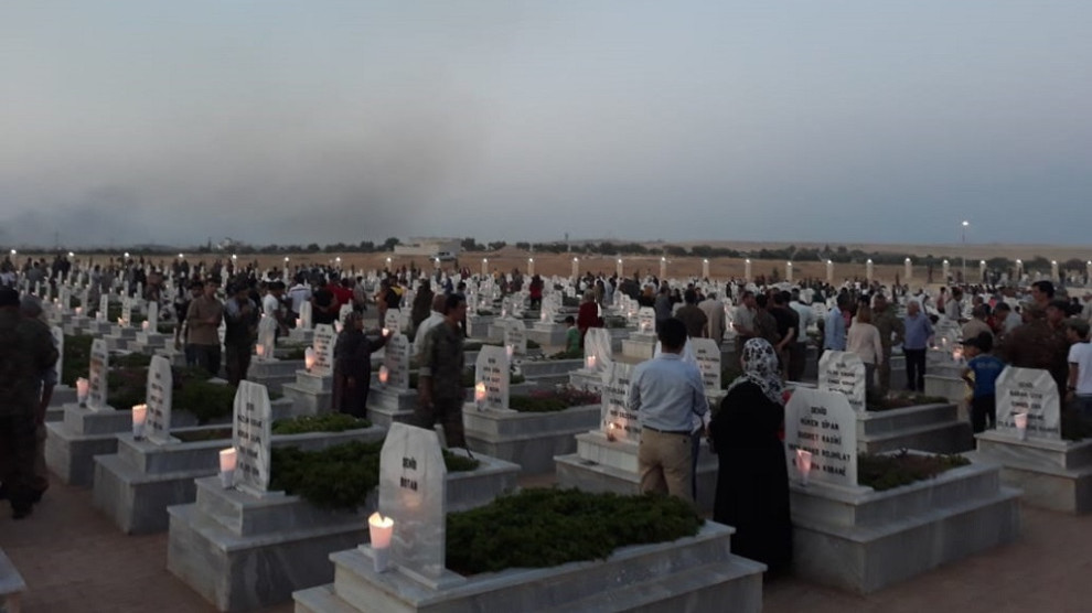 KOBANÊ – Merasîm li Goristana Şehîd Dicle, şehîdgeha li gundê Berxbotan û li şehîdegeha komkujiya 25’ê Hezîranê ya li navenda bajêr pêk hat. Rêveberiyên Firat û Kobanê û bi hezaran kes beşdarî merasîmê bûn.