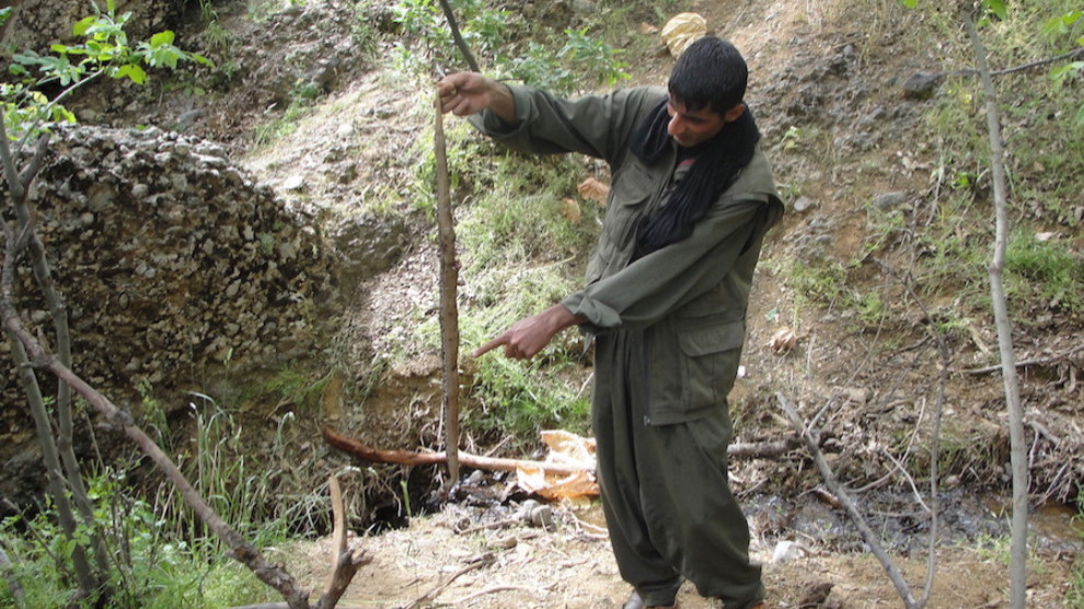 Gerîlayek marekî parçebûyî nîşan dide, yê ku ji ber bomberdûmana dewleta Tirk parçe bûye. Rojhat Torî yê ji Kerboranê diyar kir ku ew wekî çavê xwe li xwezaya Kurdistanê dinihêrin lê hêzên dagirker ên Tirk qadê bomberdûman dikin.