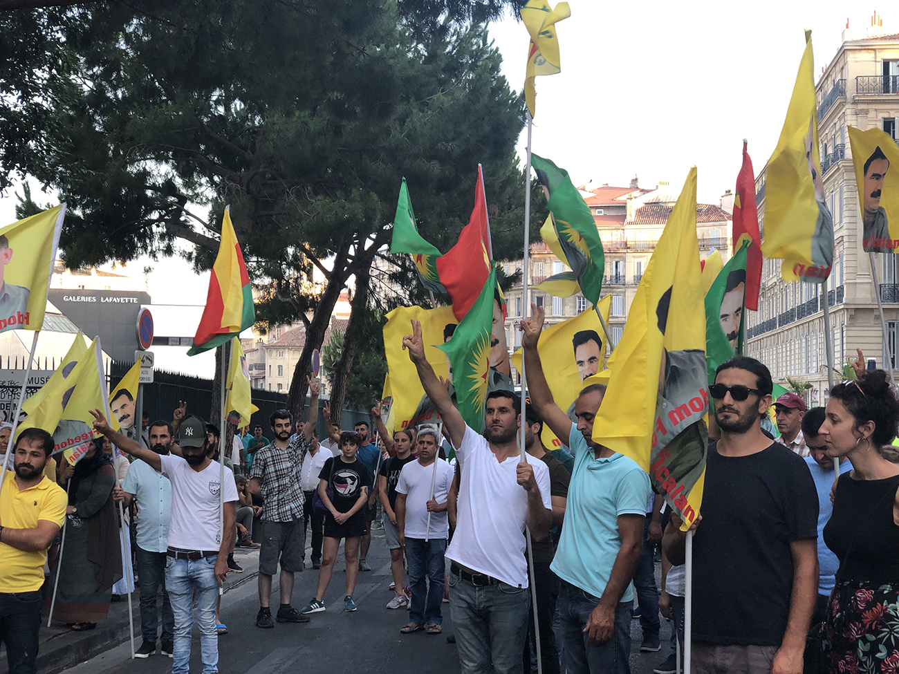 MARSÎLYA – Çalakiya ku saet 19:00’an destpê kir bi sedan kes li ser rêya Canebîere ya herî qelebalixe kom bûn, dirûşmên dilsoziya bi PKK’ê û Rêberê Gelan Abdullah Ocalan re qîrkirin.