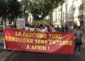 Ciwanan di meşê de li gel hildana alên PKK’ê û KCK’ê dowîz û pankartên bi zimanê Fransî hildan û ketin meşê, bê navber dirûşmên ‘Dîktator Erdogan’ qîr kirin.