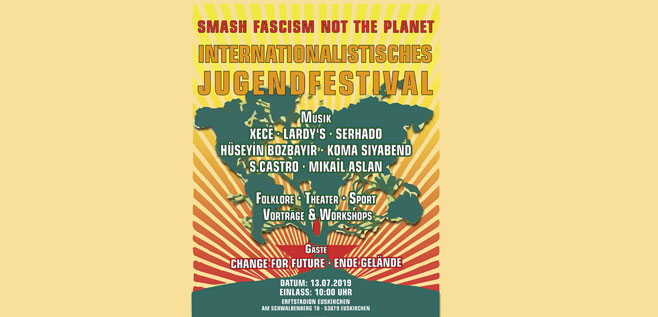 NAVENDA NÛÇEYAN – Ciwan roja şemiyê li bajarê Elmanyayê Euskirchenê di yekemîn festîvala ciwanên Enternasyonalistê de tên cem hev. Festîval li bajarê Euskirchenê bi slogana “Faşîzmê hilweşîne û xwezayê biparêze” dî 13’ê tîrmehê tê li darxistin.
