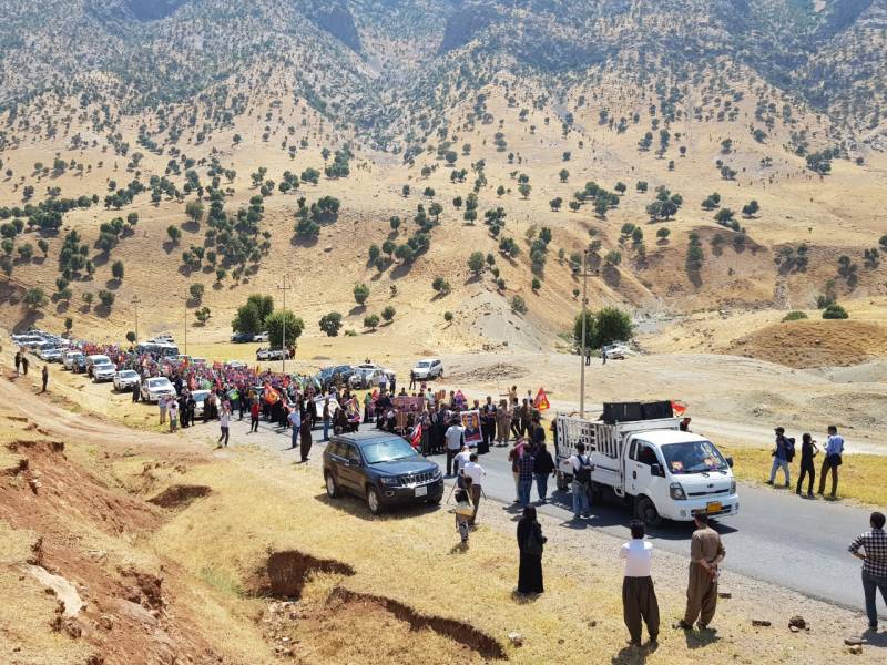 Girseya ku ji Kerkûk, Hewlêr, Silêmanî û Raperîn hatin, li Raperîn gihîştin hev û ji vir jî bi sedan wesayîtan berê xwe dan Binarê Qendîlê.