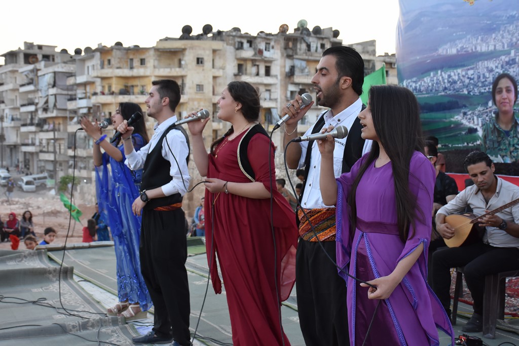 Piştre hunermenêdên Yekitiya Hunermendan stranên şoreşgerî pêşkêş kirin. Şervanan li ber stranan xelekên dîlanan gerandin.
