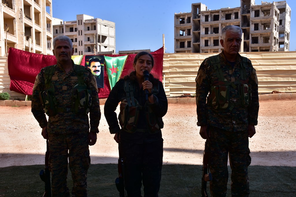 Şahî di merasîmeke leşkerî dest pê kir. Ji fermandarên YPJ’ê Sozdar Efrînê axivî û ev tişt anî ziman: “Bi saya fikir û felsefeya Rêberê Gelê Kurd Abdullah Ocalan em salvegera 7’emîn a Şoreşa Rojava pîroz dikin, bi saya Ocalan serkeftin di her qadan de pêk hatin.”