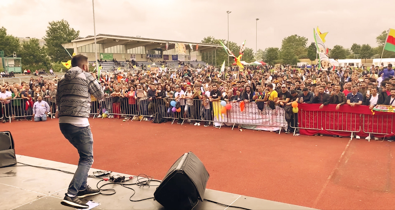 NAVENDA NÛÇEYAN – Li bajarê Elmanyaya Euskirchenê roja 13‘ê mehê yekemîn festîvala ciwanan a enternasyonalîst bi duruşmeya “faşîzme hilweşîne, xwazayê biparêze“ pêk hat. Bi kelecanekî mezin ciwanên Kurd û enternasyonalist kom bûn û giringiya têkoşîneke hevpar bin xet kirin. Festîval bi meşekî ji bo şehîdên şoreşê destpêkir. Di destên ciwanan de wêneyên şehîdên şoreşê û alên YPJ û YPG hebûn. Pişt re program bi stranên Xecê, Lardy´s, Serhado, Hüseyin Bozbayır, Koma Siyabend, S. Castro û Mikail Aslan dewam kir. Wekî din bi govend, panel, şanoya jinên ciwan, aktîviteyên werzişê û lîstokên zarokan programa festîvalê hat dewlemend kirin.