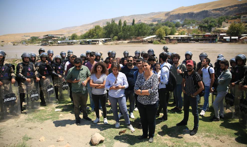 ÊLIH – Cendirmeyên dagirker destûr nedan ku Endamên Meclîsa Ciwanan a HDP’ê li dijî talankirina Heskîfê “Nobeta Çadirê” bigirin.