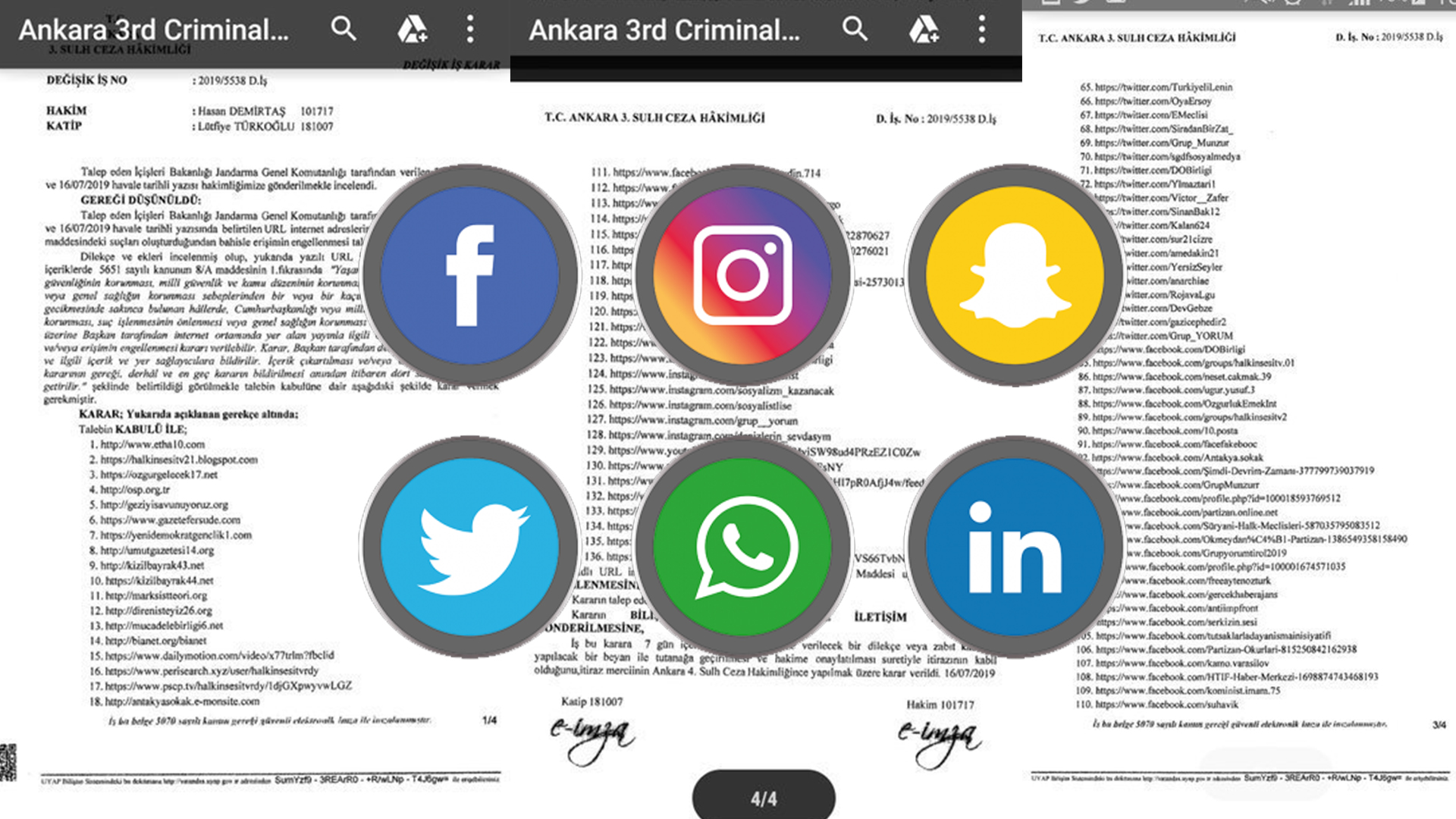 Muhalif sitelere ve sosyal medya hesaplarına otomatik olarak erişim engeli getirmeyi alışkanlık haline getiren Ankara sulh ceza hakimliği, Jandarmanın talebi üzerine twitter hesabıma erişim engelli getirilmesine karar vermiş. pic.twitter.com/woz3NXIuAm