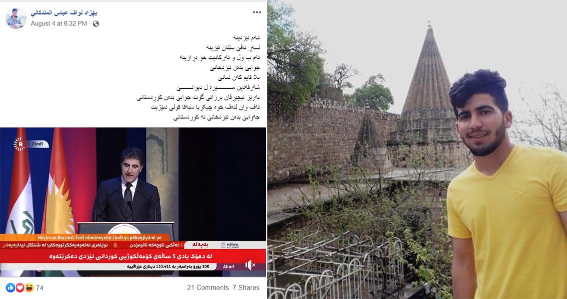 Asayîşa PDK’ê Ciwanekî Êzidî ji ber parvekirinên wî ên li ser Facebookê ew girtin