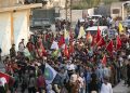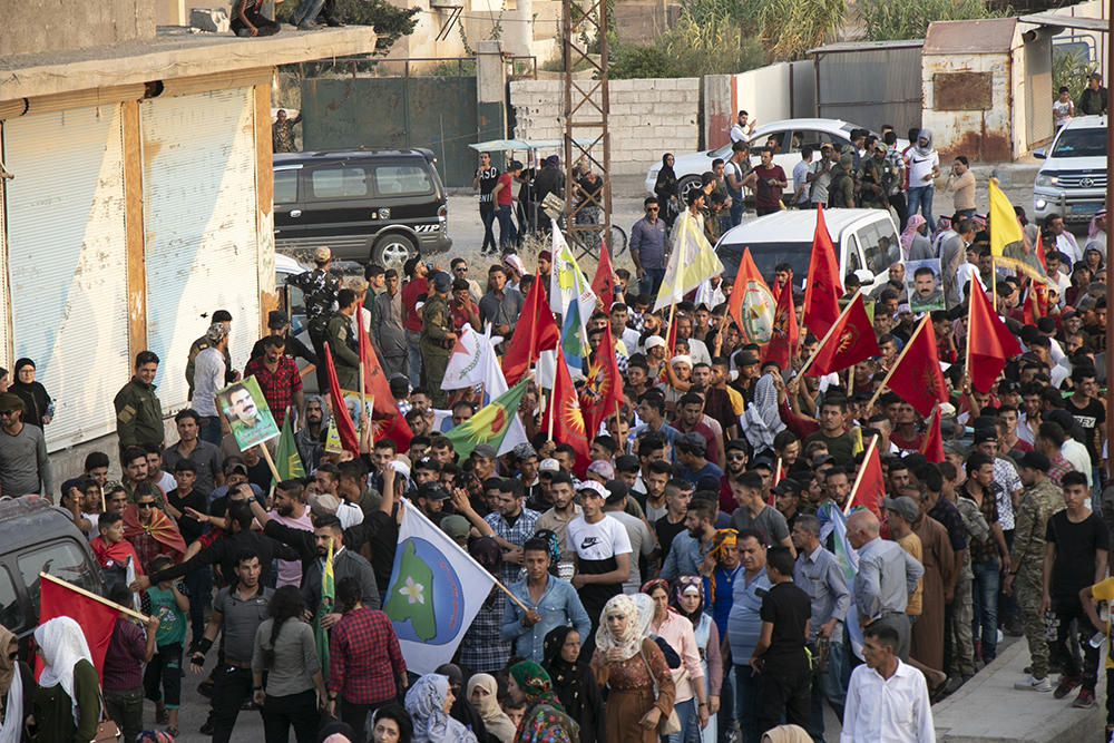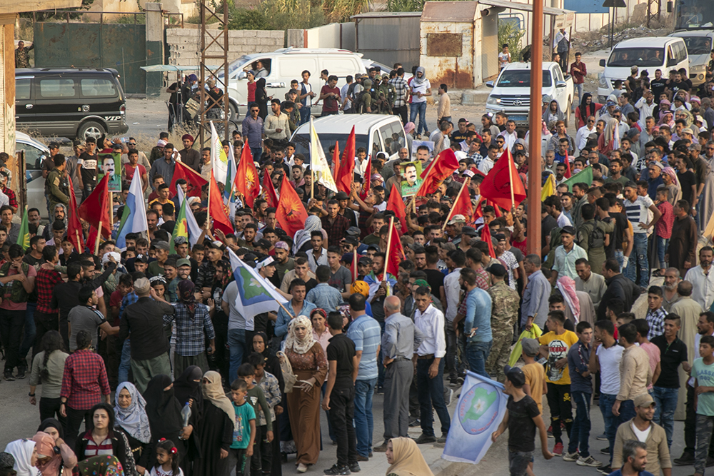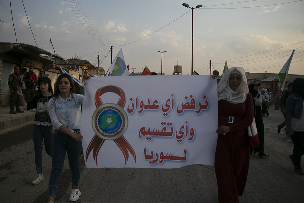 GIRÊ SPÎ – Ciwanên kantona Girê Spî li djiî gefên Tirkiyê yên li ser herêmên Bakur û Rojhilatê Sûriyê meşiyan. Meşa ji rawestgeha taxa Eyn El-Arûs dest pê kir û li ber çalakiya mertala zindî ya li taxa El-Minbetih rawestiya.