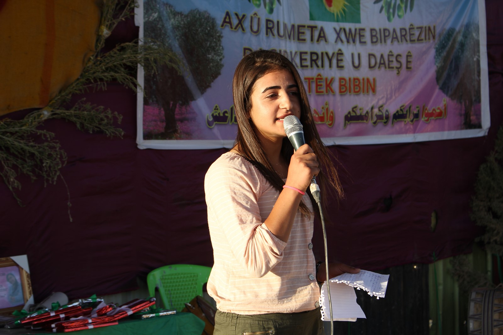ŞEHBA – Mîhrîcana Şehîd Stêrvan a ji aliyê Yekitiya Jinên Ciwan ve bi dirûşma “Bi rihê şehîd Stêrvan serî hilde û rêya rizgarkirina Efrînê rêz bike” hatiye organîzekirin di roja xwe ya 3‘yemîn de li kanatona Şehbayê bi dawî bû.