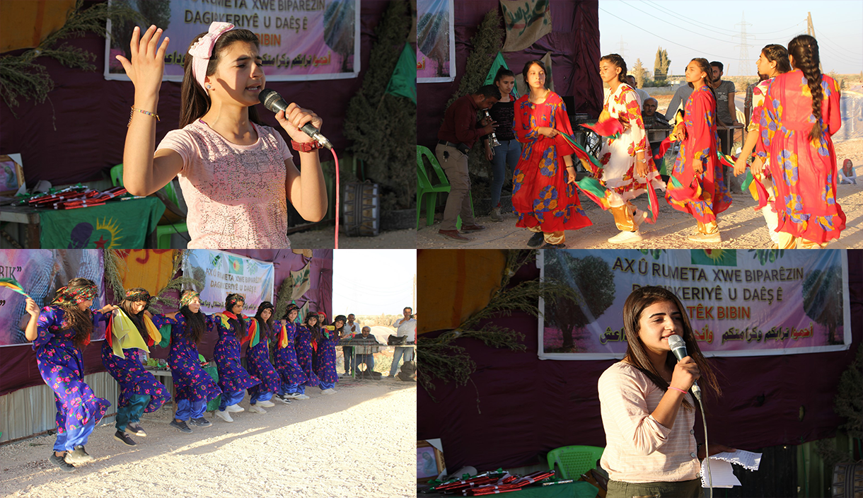Piştî deqeyeke rêzgirtin, koma xwendekarên navçeya Ehdasê û ciwana bi navê Sîlvana Haşim stran gotin. Cemîla Mihemed û Îman Mihemed jî helbest xwendin.