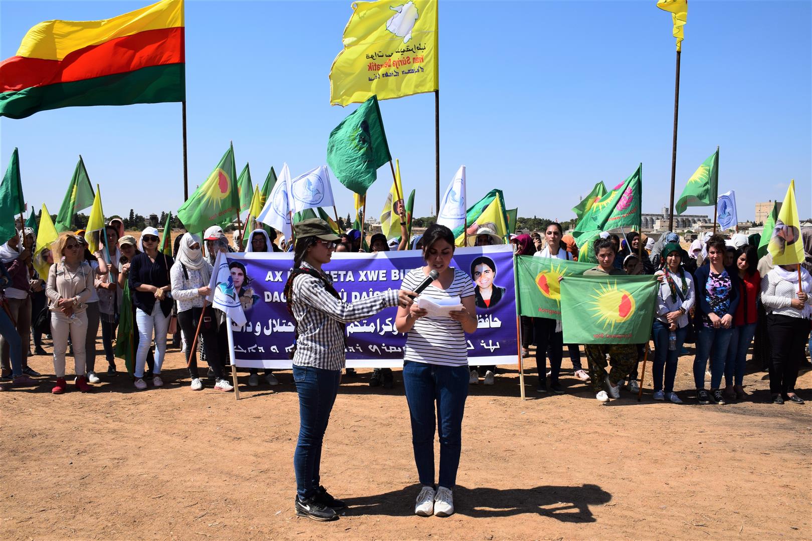Daxuaynî bi dirûşma “Jin Jiyan Azadî” û “Ji dagirkeriyê re na”bi dawî bû.