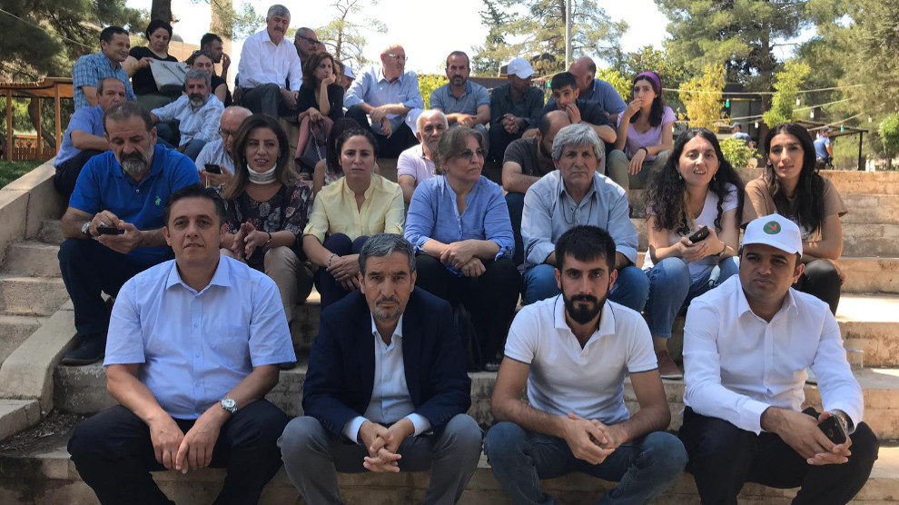 MÊRDÎN – Li Mêrdinê çalakiya li dijî tayînkirina qeyûman di roja 8’an de berdewam dike. Koma ku parlamenterên Partiya Demokratîk a Gelan (HDP) jî di nav de li Parka Karayollari kom bûn û xwestin daxuyaniyê bidin çapemeniyê. Piştî parlamenter kom bûn, polîs hatin qadê û koma HDP’ê dorpêç kirin. Polîsên Tirk her wiha destûr nedan ku rojnameger çalakiyê bişopînin û destûr nedan ku dîmen û wêneşan bikişînin. Polîsan dîsa rojnamger ji qadê dûr xistin û li pêş rojnamegeran bûn asteng. Koma HDP’ê piştî çalakiya rûniştinê wê bimeşin avahiya HDP’ê ya Mêrdînê.