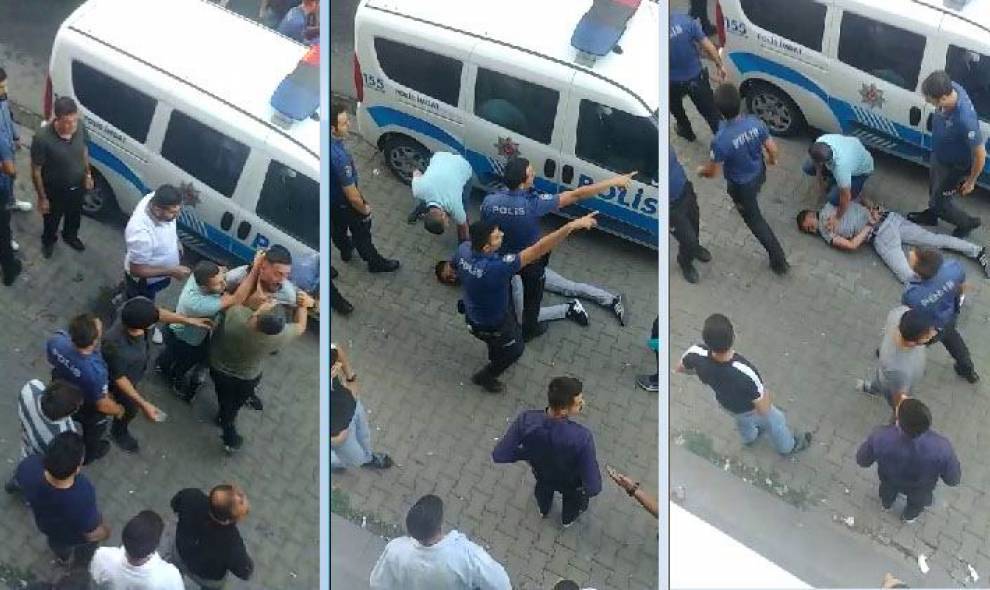 Bavê ku dît her du zarokan wî bi lêdanê tên binçavkirin, xwest mudaxileyî bûyerê bike. Lê rastî êrîş û tundiya bi dehan polîsan hat. Polîsan bav û du zarokên wî li nava konê bi erdêre dirêj kirin, paşve keleçpe kirin û kirin binçavan. Welatiyên kêliyên derp û lêdana polîsan bi telefonê qeyd kirin, bertek nîşanî polîsan dan.
