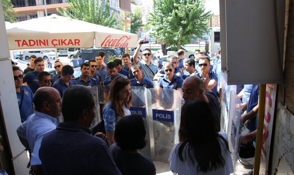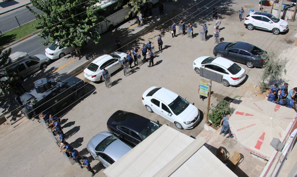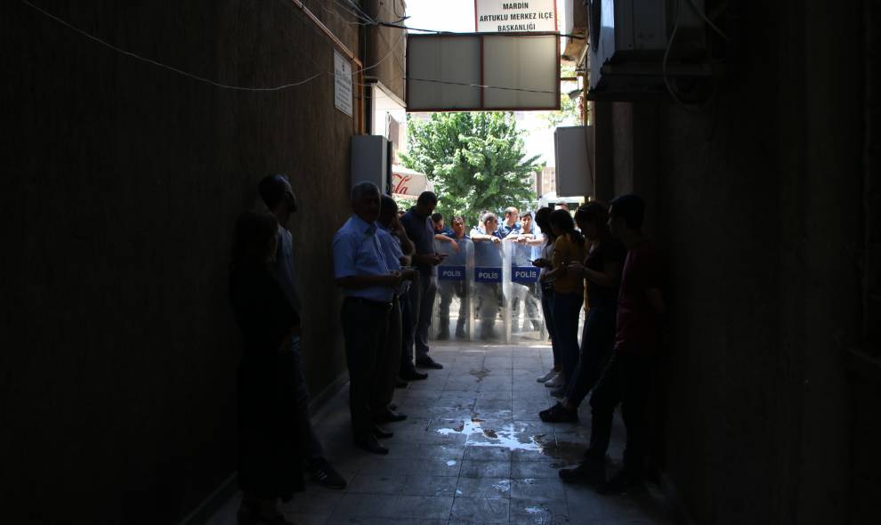 MÊRDÎN – Li Mêrdînê berxwedana li dijî darbeya qeyûm didome. Dema ku ji bo Nobeta Demokrasiyê ya li Parka Karayoluyê bidomînin partiyî ji avahiya Rêxistina Bajêr a HDP’ê derketin polîsan ew asteng kirin. Polîsan avahî û derdora wê dorpêç kirin û nehiştin ku HDP’yî biçin parkê.