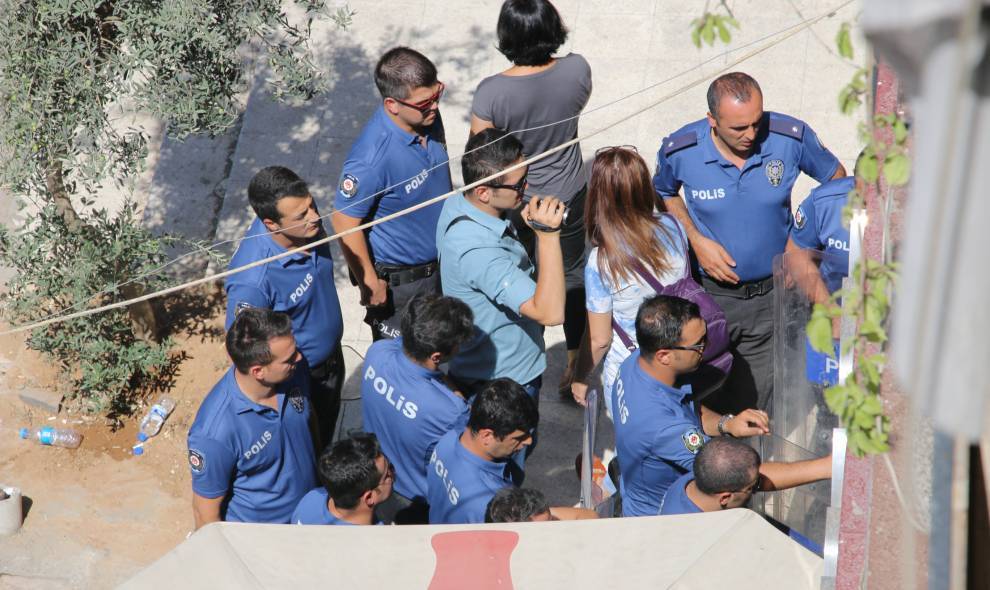 Li ser vê di navbeyna polîsan û HDP’yiyan de nîqaş derket. Parlamenter ji partiyiyan qut bûn û çûne parkê.